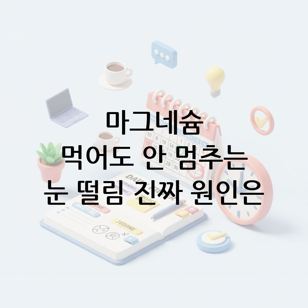 모니터를 뚫어져라 쳐다보고 있는데 갑자기 눈 밑이 '파르르'하고 떨리는 그 느낌, 다들 아시죠? 거울을 보면 남들 눈엔 잘 안 보이는데, 나한테만 느껴지는 그 미세하고 불쾌한 진동 말이에요. 처음엔 대수롭지 않게 넘기다가도, 이게 하루 이틀을 넘어 일주일씩 지속되면 슬슬 겁이 나기 시작합니다. 주변에 물어보면 백이면 백 "너 마그네슘 부족해서 그래, 바나나 좀 챙겨 먹어"라는 대답이 돌아오죠.